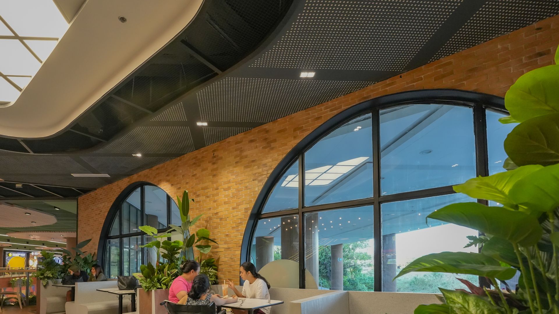 Technology meets nature. In SM City East Ortigas, natural light brightens the food hall, and retrofitted lighting produces significant energy savings.